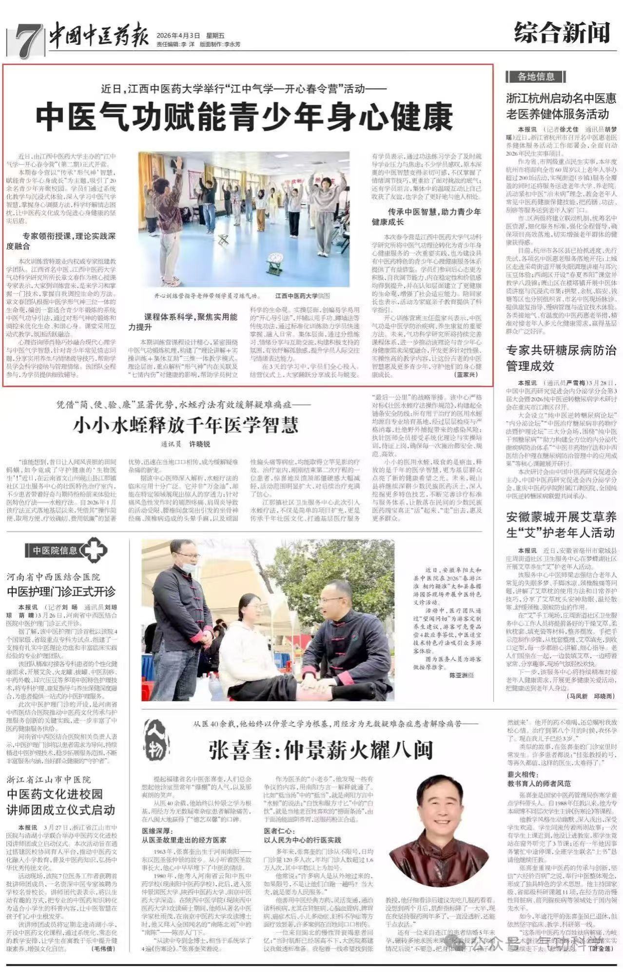 书院学子在《中国中医药报》发表文章——中医气功赋能青少年身心健康
